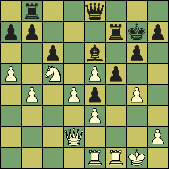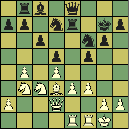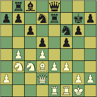 All standard book until my 10. … g6. The book move is Nf8 but I decided it was good tactics to block Short’s Bishop and Queen and move out of book (I had a plan!)