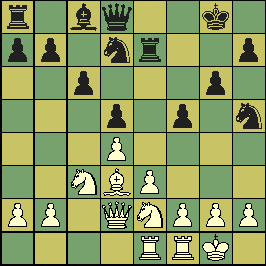 All standard book until my 10. … g6. The book move is Nf8 but I decided it was good tactics to block Short’s Bishop and Queen and move out of book (I had a plan!)